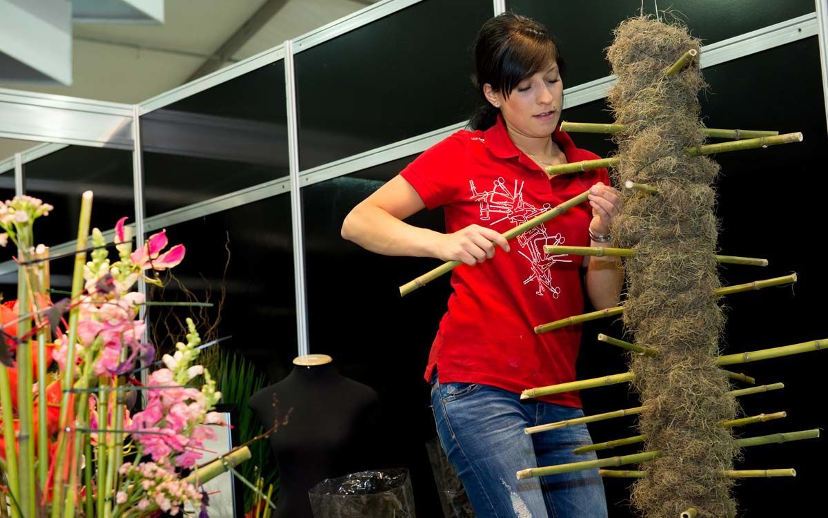 • Schnittblumen zu Sträußen zusammenstellen, Pflanzen in Gefäßen wie Vasen, Körben, Schalen etc. arrangieren