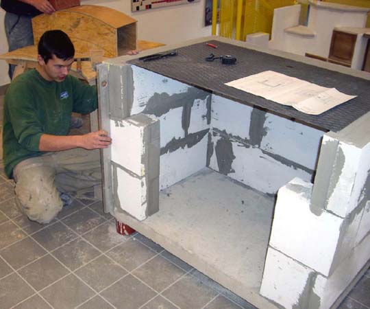 • Innenseite mit Spezialmörtel und Schamotteplatten auskleiden