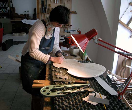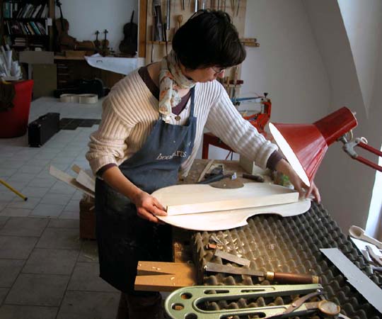 Die Instrumente werden in Einzelteile gefertigt und anschließend zusammengebaut (eine Geige besteht z. B. aus  Schnecke, Wirbel, Wirbelkasten, Obersattel, Griffbrett, Decke, Saiten, Steg). Für die einzelnen Teile bearbeiten sie die Hölzer per Hand und mit Maschinen, vor allem durch Sägen, Schneiden, Hobeln und Feilen. Weitere Arbeitstechniken sind Beizen, Lackieren, Polieren, Schleifen sowie das Aufziehen der Saiten. Besondere Aufmerksamkeit bekommt auch die Lackierung, denn diese soll das Instrument nicht nur für möglichst lange Zeit konservieren, sondern prägt auch den Klang des Instruments entscheidend mit.