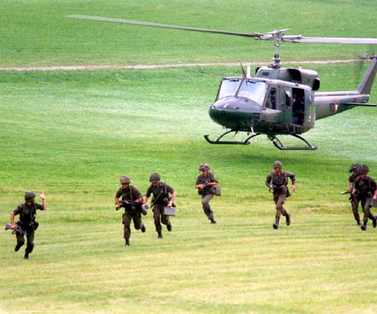 • Luftstreitkräfte: bodengebundene Luftabwehrtruppe, Flugmeldetruppe, Luftunterstützungstruppe, Kampffliegertruppe